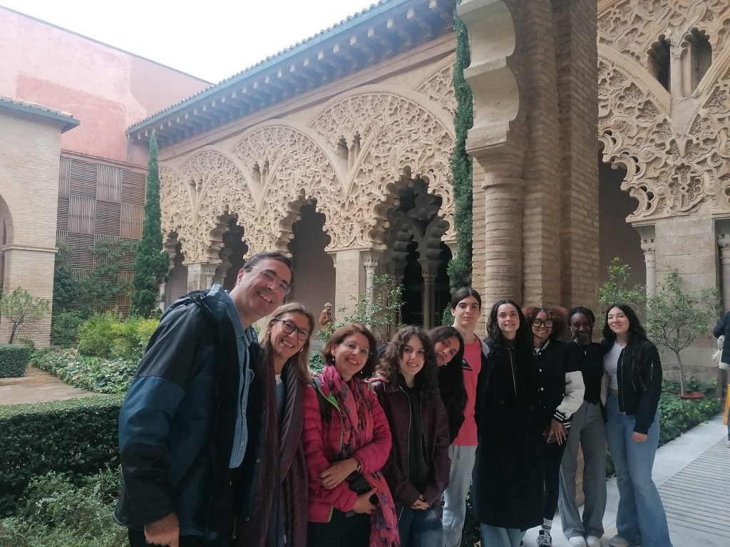 El grupo de estudiantes de Historia del Arte de 2º Bach B visitaron el Palacio de la Aljafería acompañados de las profesoras Serena y María de Como (Italia), de visita en el marco del programa Erasmus+.