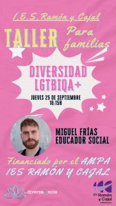 🌈 Desde el IES Ramón y Cajal queremos invitar a todas las familias a la formación sobre diversidad LGTBIQA+, un espacio de aprendizaje y diálogo para fomentar el respeto de todas las realidades en nuestros hogares.