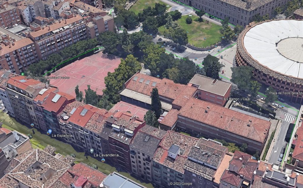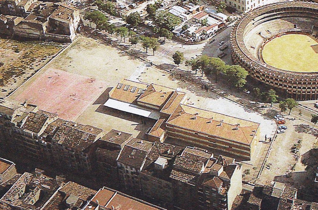 Nuestro instituto es una parte del pulmón del barrio, dos imágenes, de 1988 y de 2023 donde podemos apreciar la labor del taller de agrojardinería fomentando la revegetación del entorno.