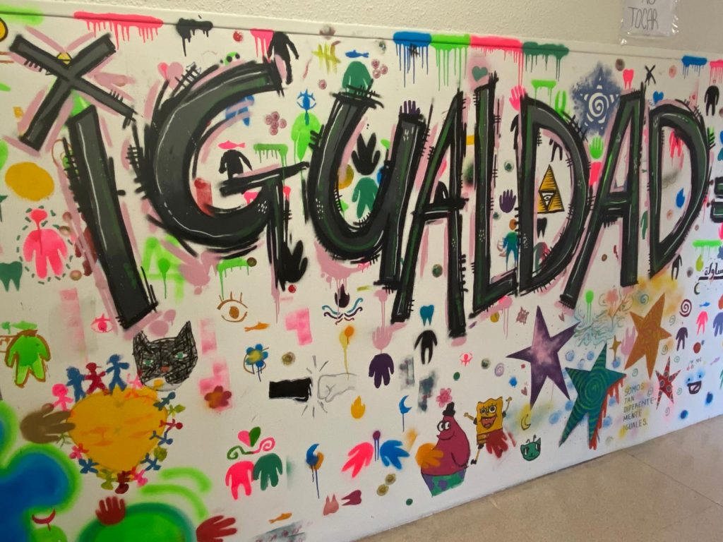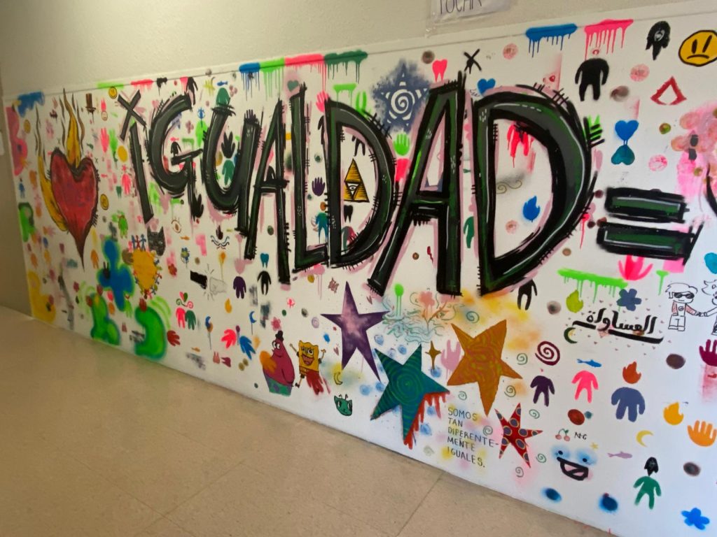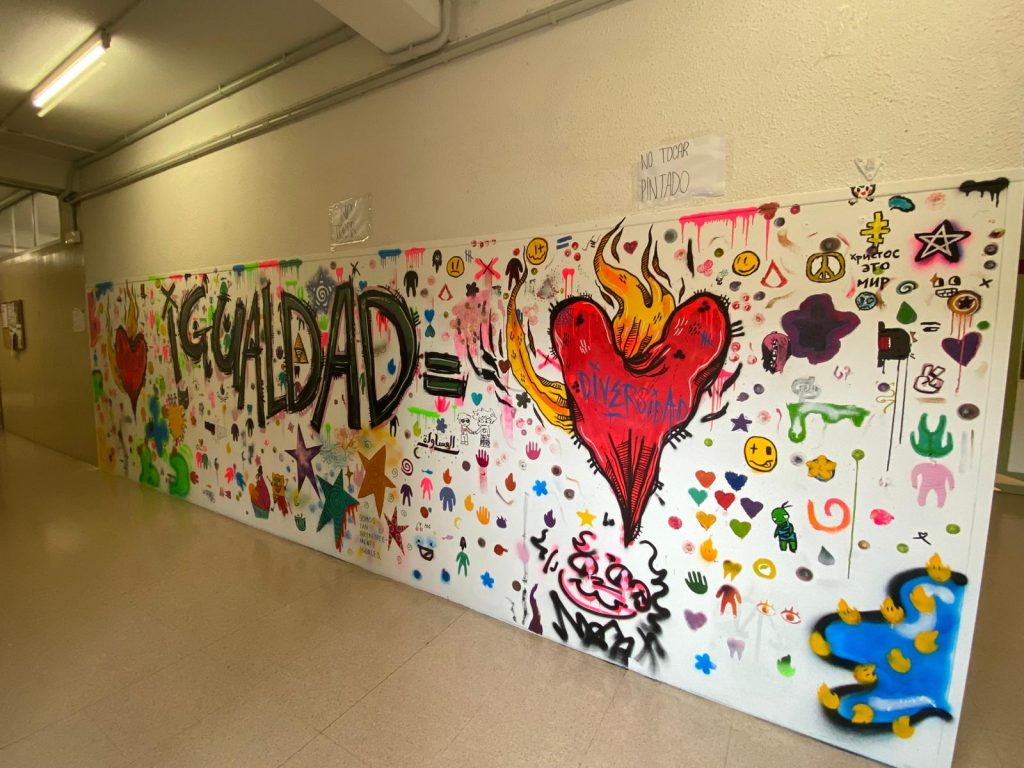 Alumnos y alumnas del instituto han participado en la realización de un mural sobre igualdad ayudados por el artista Cayo.