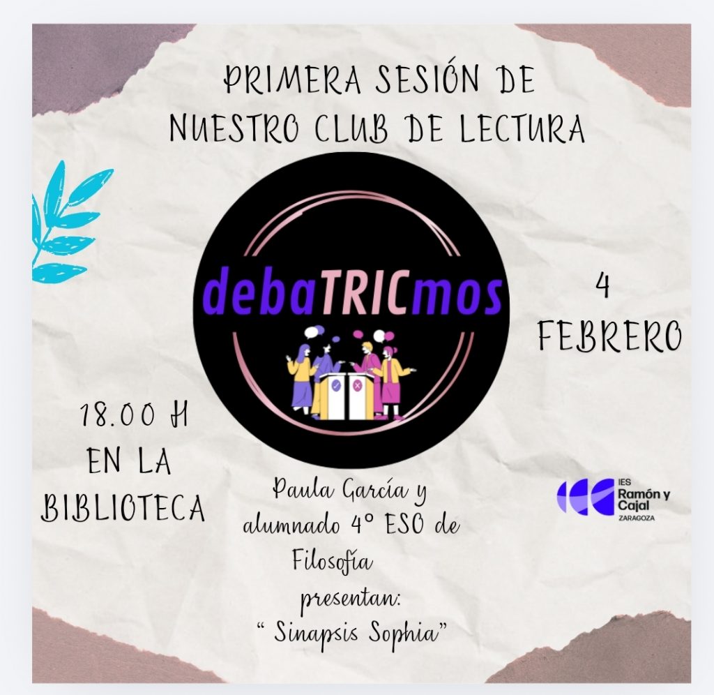 El próximo miércoles, 4 de febrero, tendrá lugar la primera sesión de nuestro especial club de lectura «DebaTRICmos», los alumnos y alumnas de 4º de filosofía junto a su profesora Paula García presentarán su revista «Sinapsis sophía»