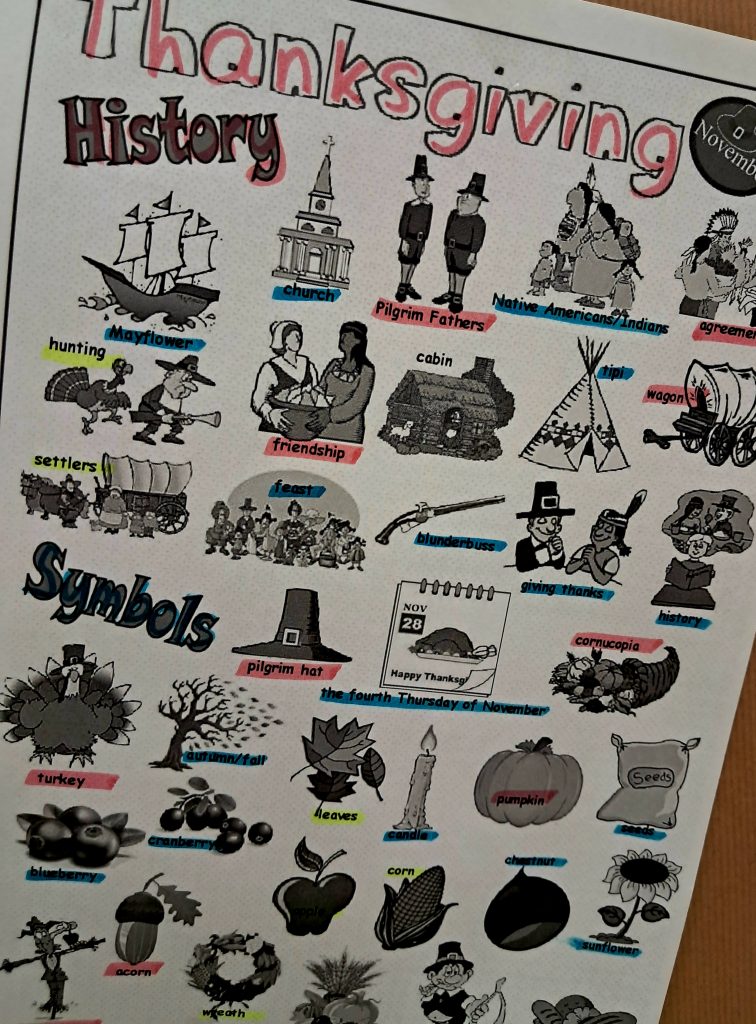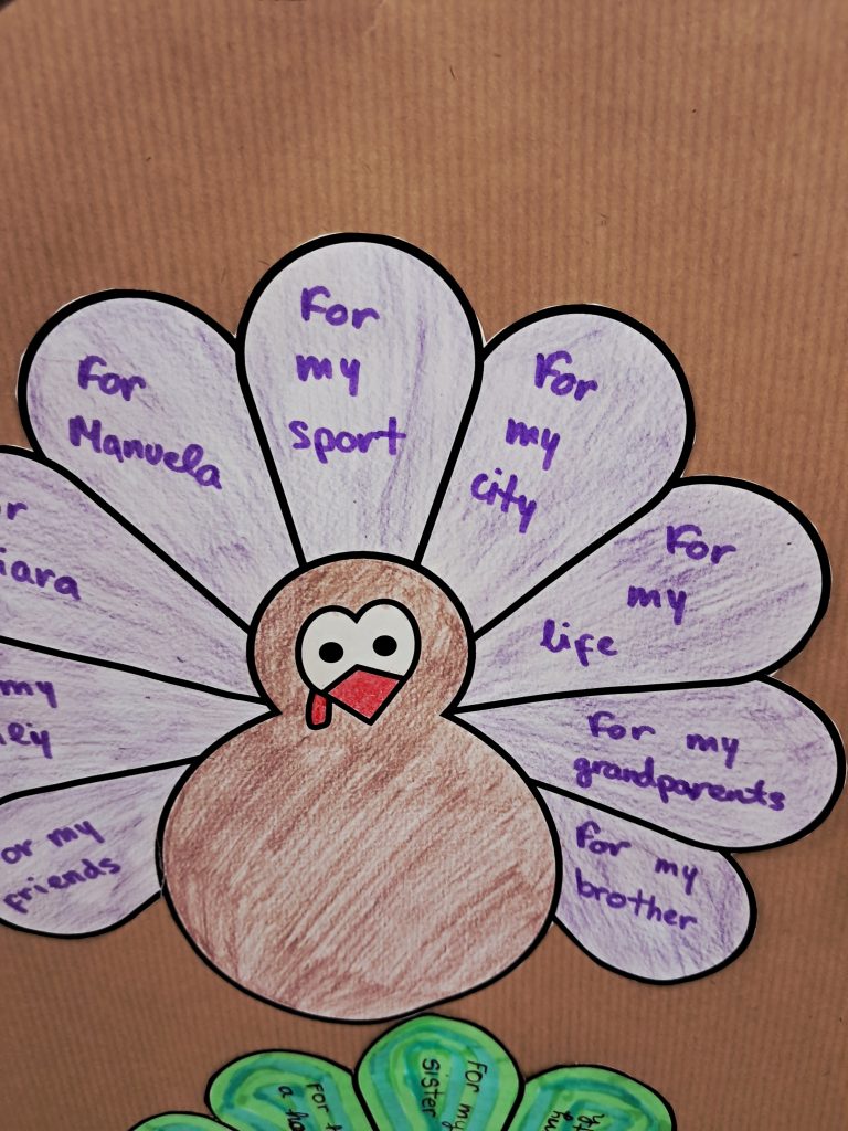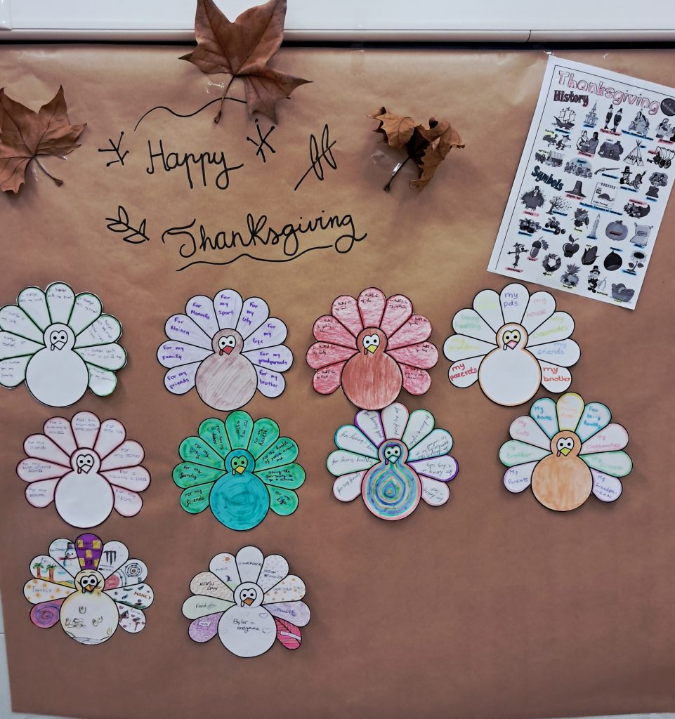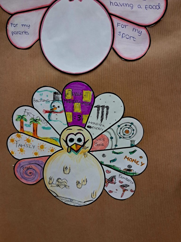 The students of 2 eso and 4 eso have celebrated thanksgiving day. We have given thanks for all the things that we have. We have created some murals with turkeys.