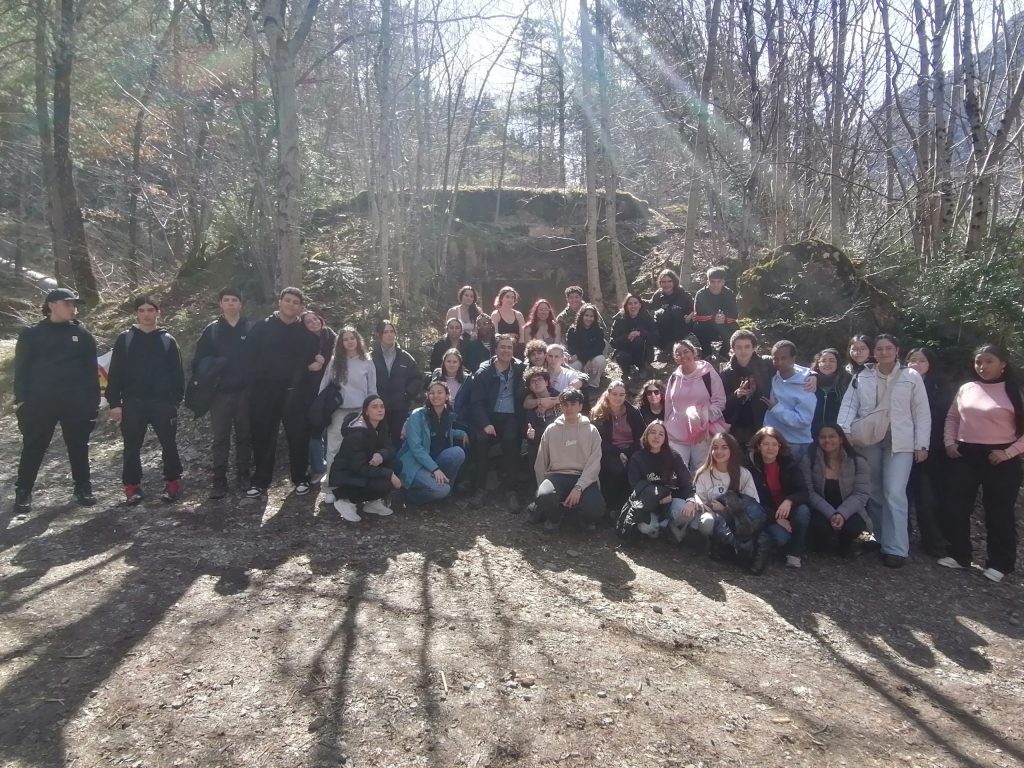 Posteriormente hablamos sobre la Segunda Guerra Mundial en la Estación Internacional y caminamos por el bosque para visitar los bunkeres de la Línea Pirineos. Terminamos la visita en Jaca.